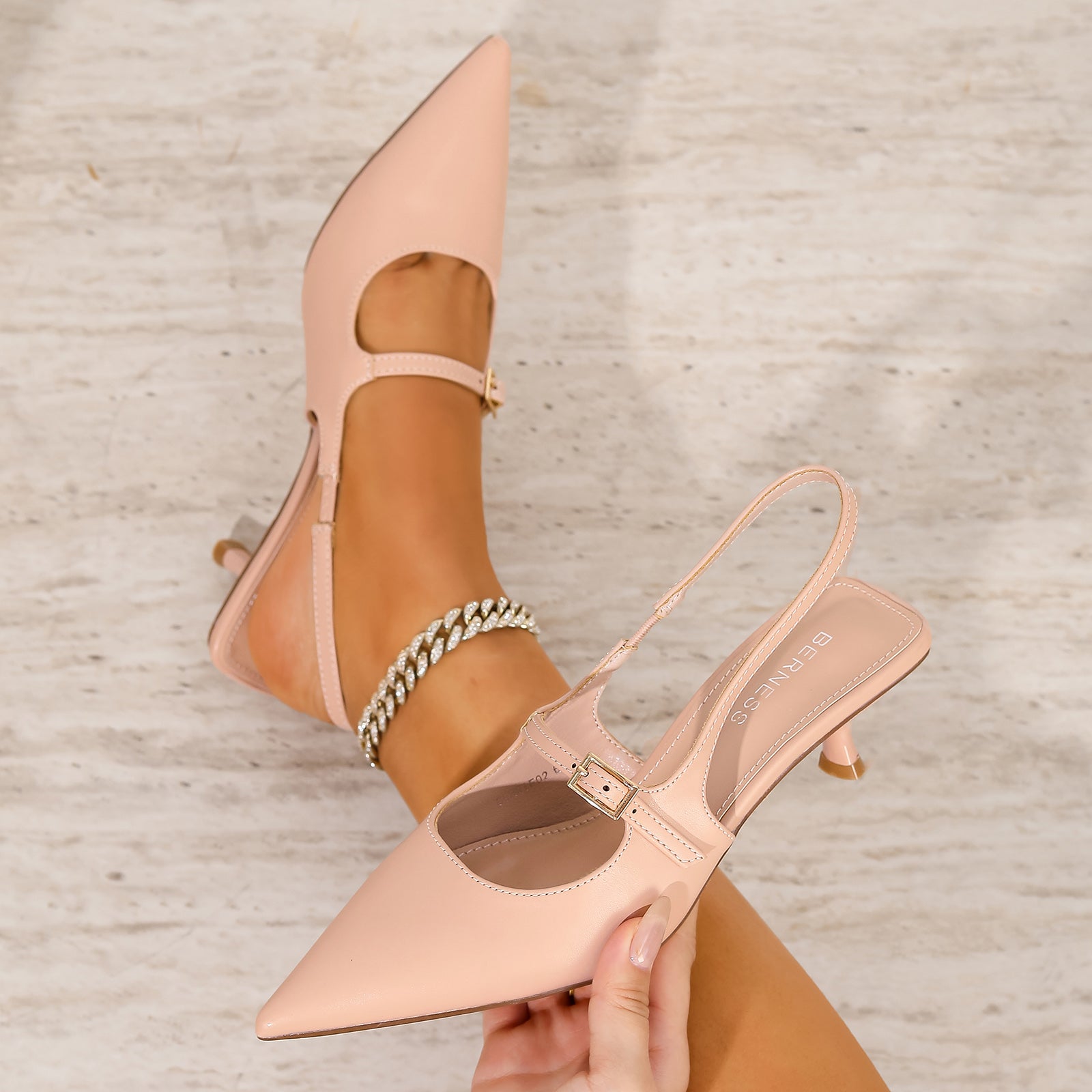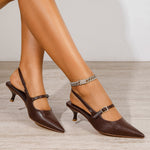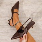 Polished, feminine, and effortlessly wearable. The Corrie Heels features a sleek pointed toe and a delicate buckle strap that adds just the right amount of detail. Finished with a comfortable kitten heel, this slingback style transitions seamlessly from workdays to date nights, weddings, and semi-formal occasions with refined ease.