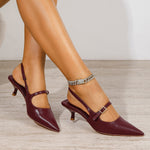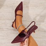 Corrie Buckle Strap Kitten Heel Slingback Pumps