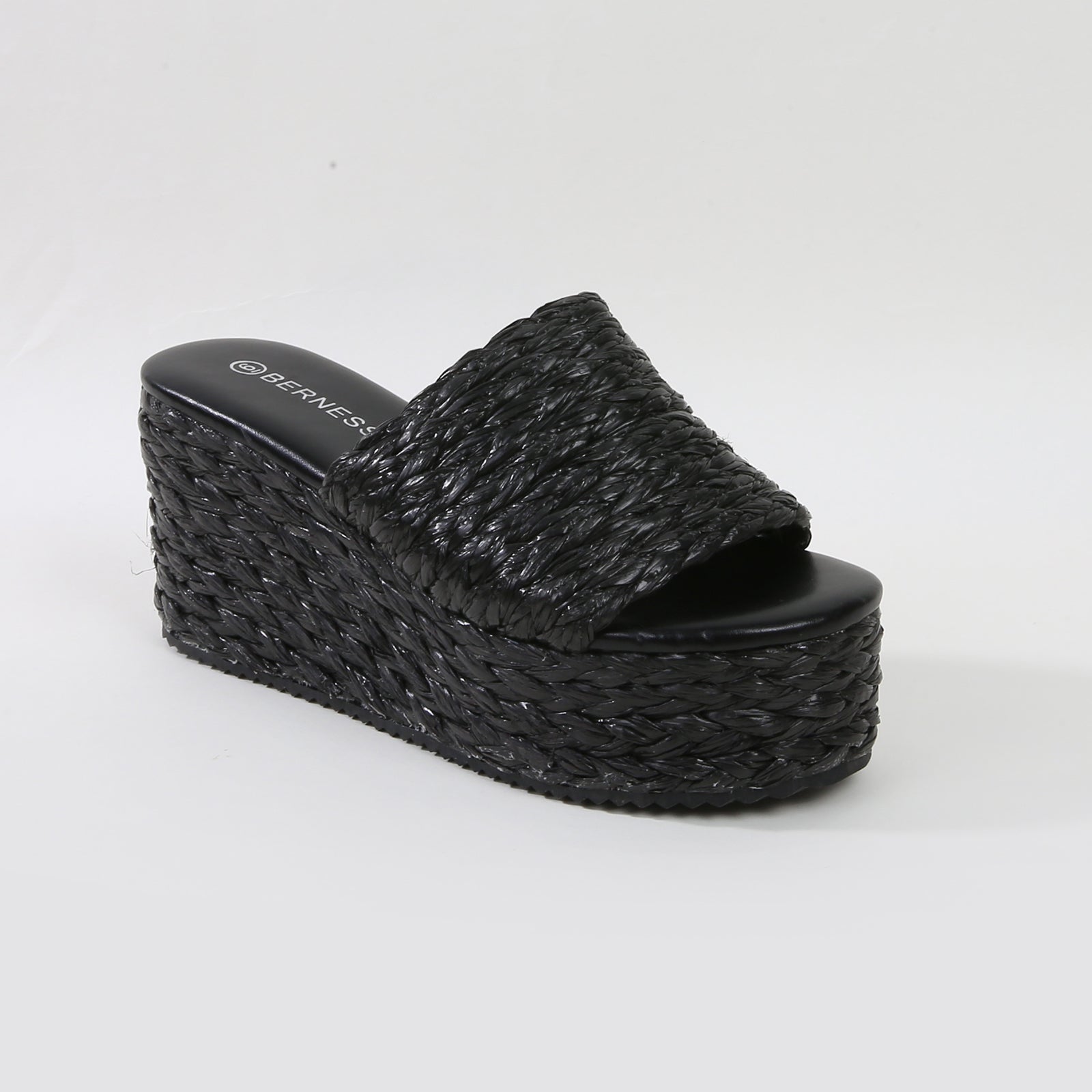 Step into summer style with these woven platform wedge sandals, designed to offer a perfect blend of laid-back charm and elevated fashion. Featuring a chic woven raffia texture, these sandals bring a rustic yet refined touch to any warm-weather outfit. The platform wedge adds height while maintaining a casual and comfortable look, making them ideal for sunny days spent by the beach or around town.