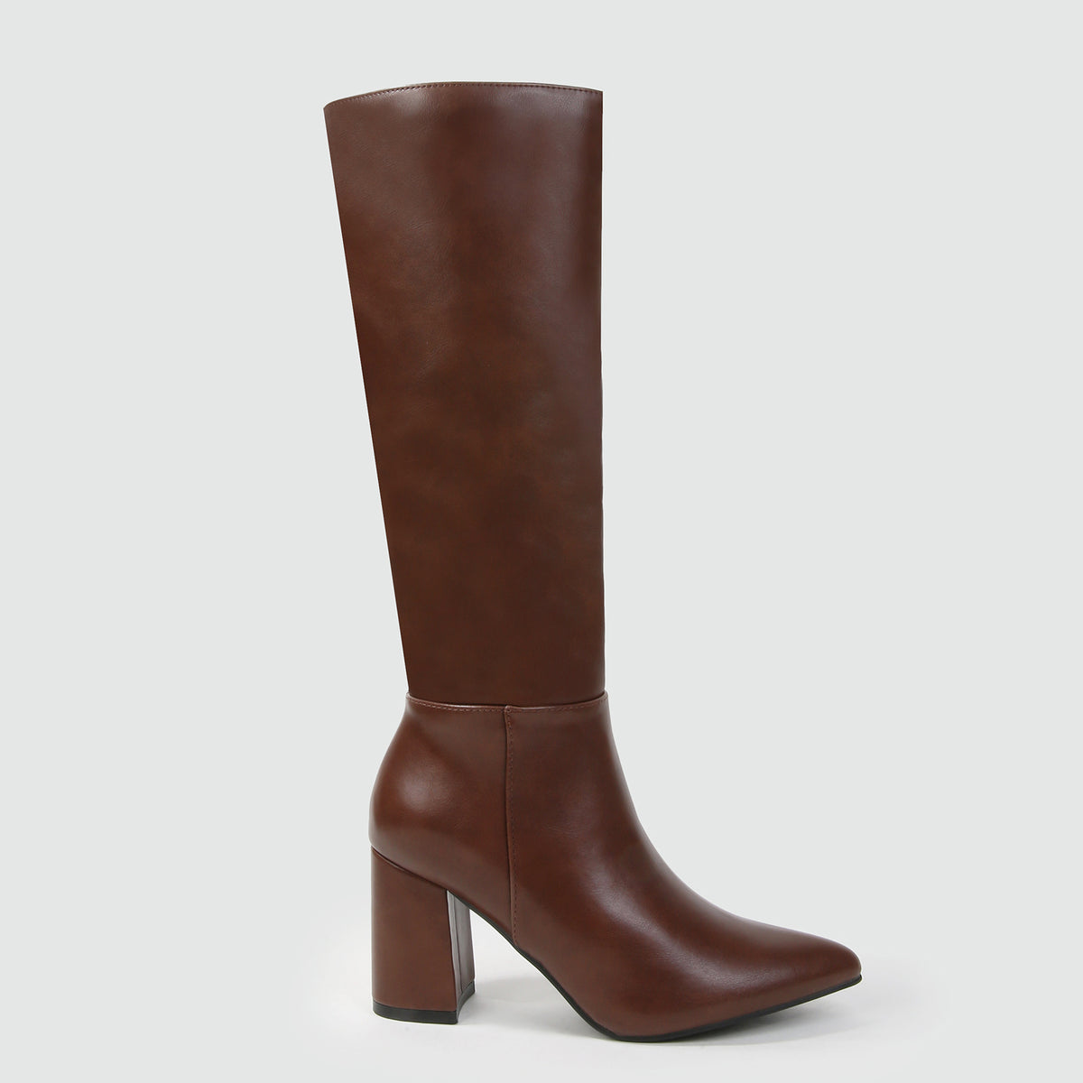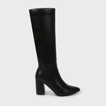 Designed with a sleek knee-high silhouette and a clean pointed toe, these block heel boots bring modern polish to everyday and dressier looks. Crafted in smooth faux leather, the streamlined design offers a refined finish while the sturdy block heel provides comfortable lift and confident wear from day to night. A versatile essential that transitions effortlessly from workdays to special occasions.