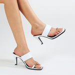 Catha Patent Wide Strap Slide Heels with Metallic Toe Ring