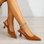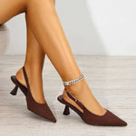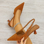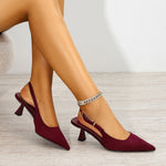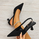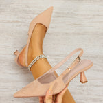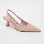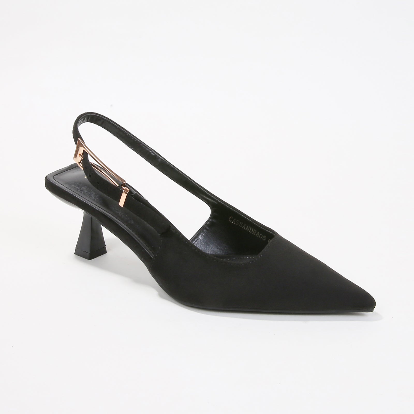 Timeless and elegant, the Cassandra slingbacks are crafted with a sleek pointed toe and soft faux suede upper. The slender slingback strap is adorned with a gold buckle accent, bringing a polished touch to your workwear or evening outfits.