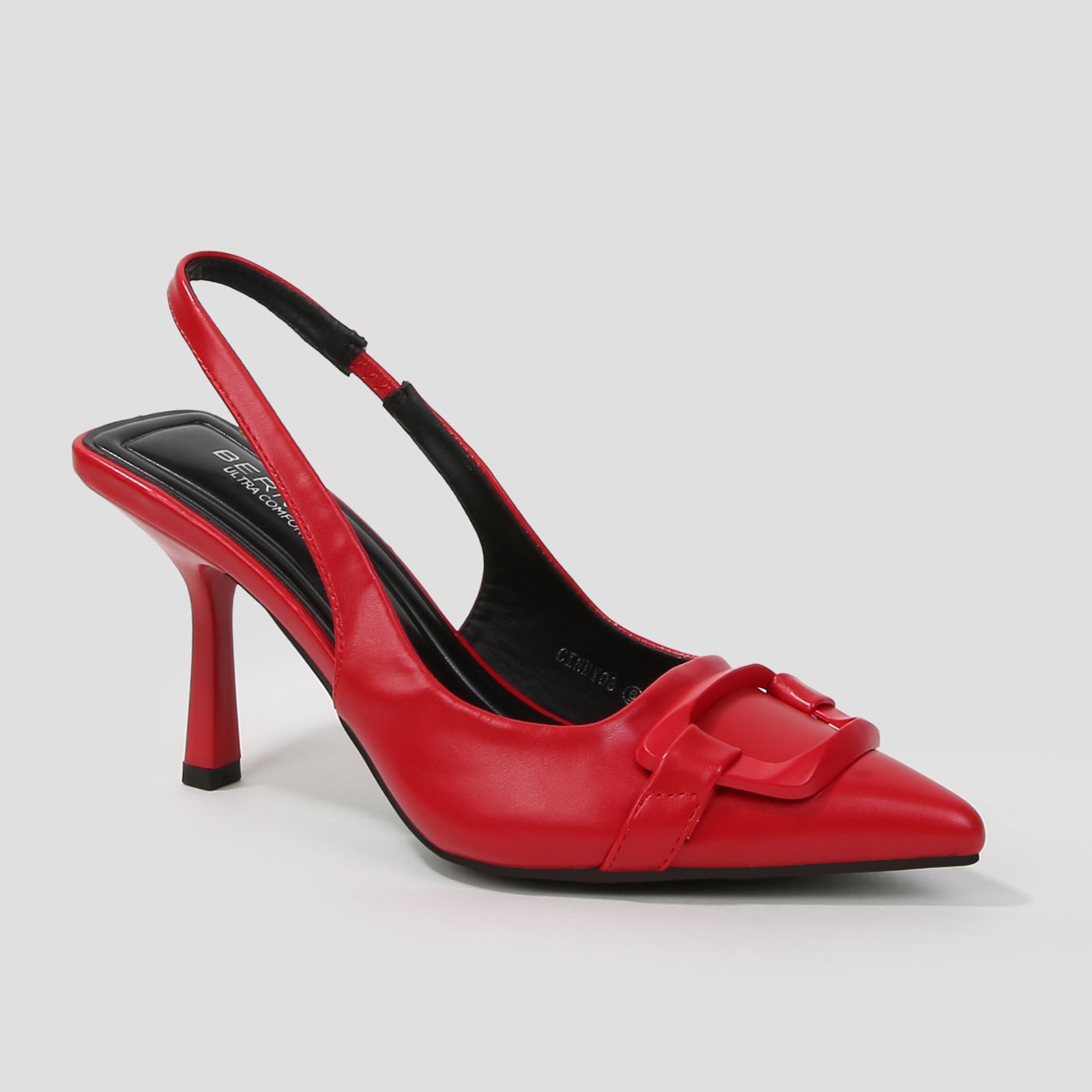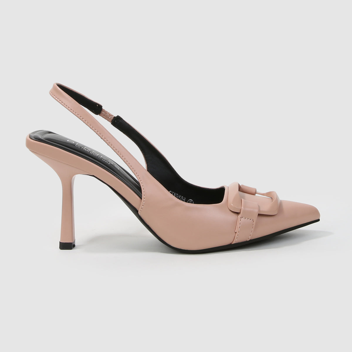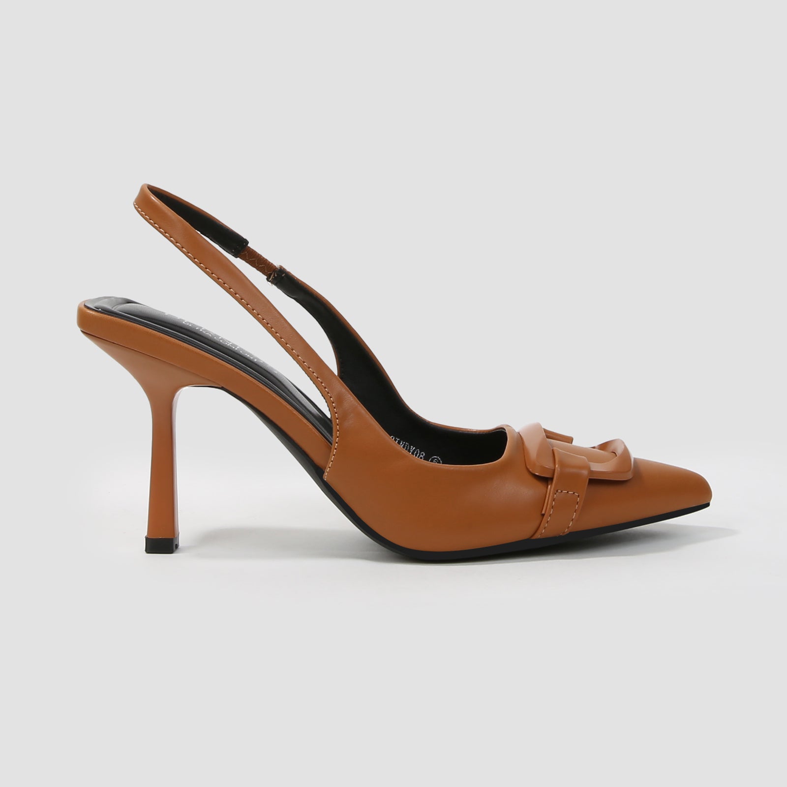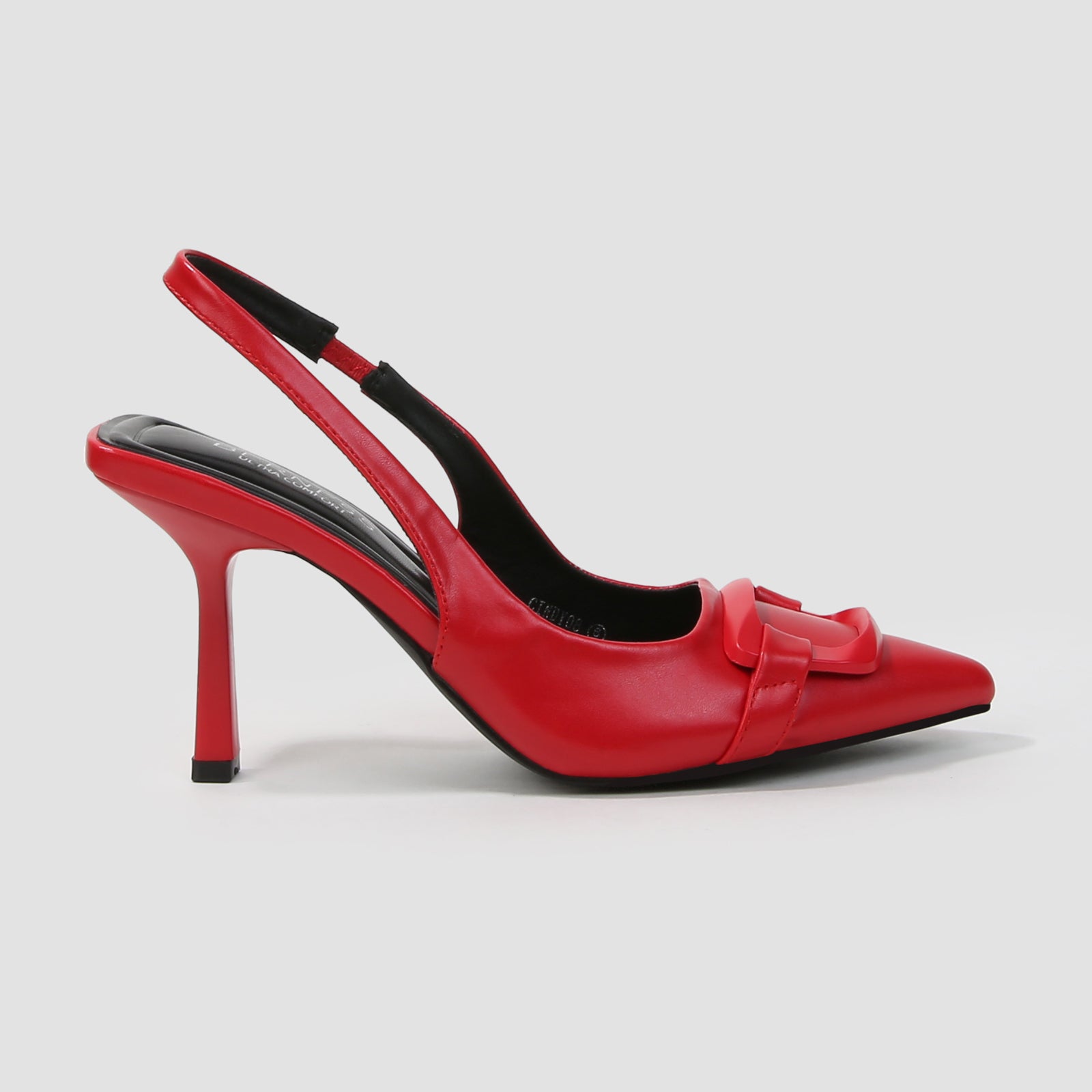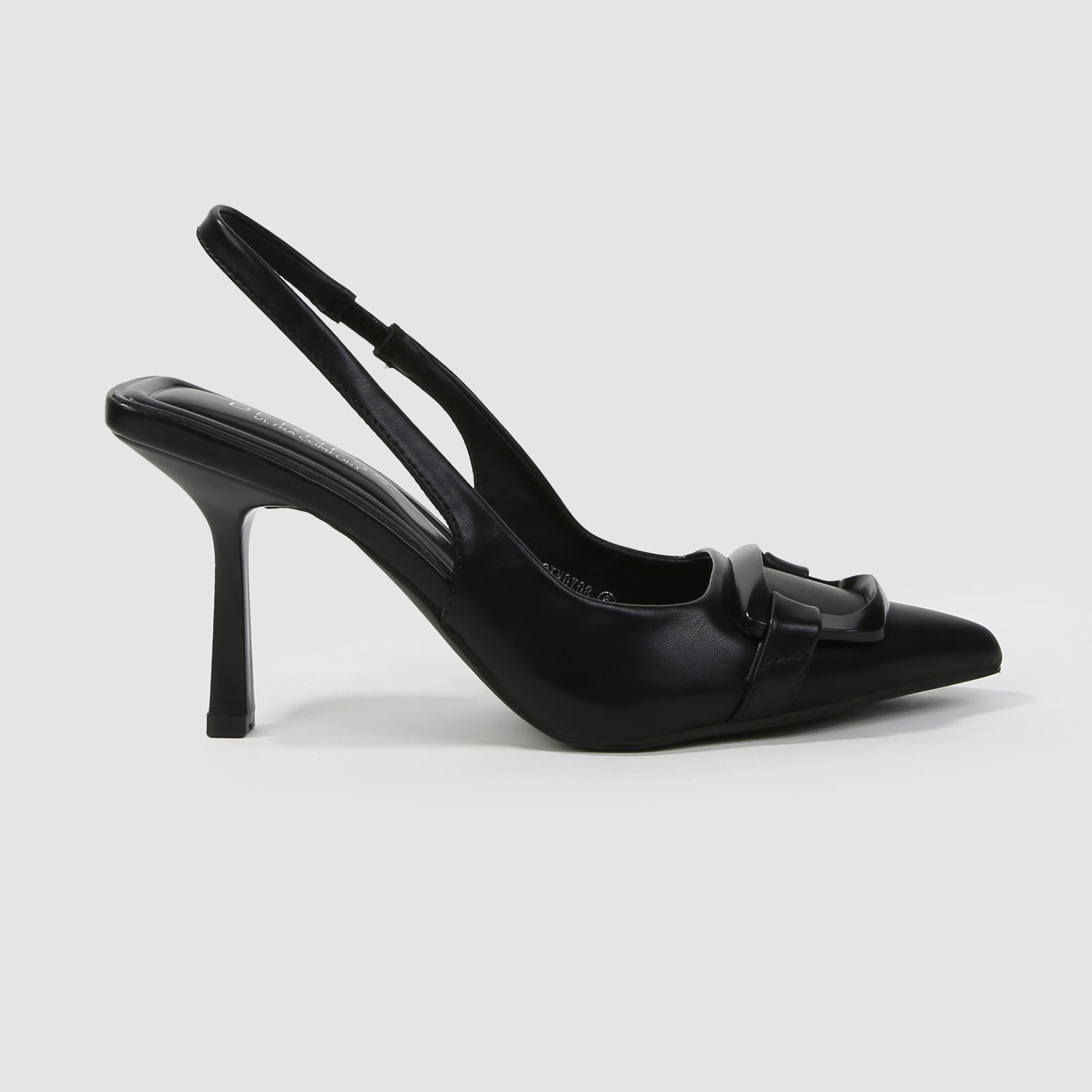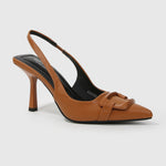Cindy Slingback Faux Leather Stiletto Heels with Buckle Detail