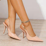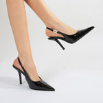 Sleek sophistication meets modern edge. These pointed-toe slingback heels feature a glossy patent finish and a bold chain accent that adds instant polish to any outfit. Designed for confidence and versatility, they’re perfect for nights out, events, or elevating your everyday style.