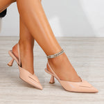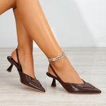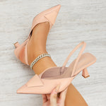Corless Pointed Slingback Pump Heels with Trapezoid Accent