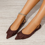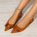 Soft suede texture and a refined pointed toe come together with an oversized buckle accent, creating an effortlessly polished flat that elevates any everyday look. Perfect for work, brunch dates, and relaxed chic outfits.