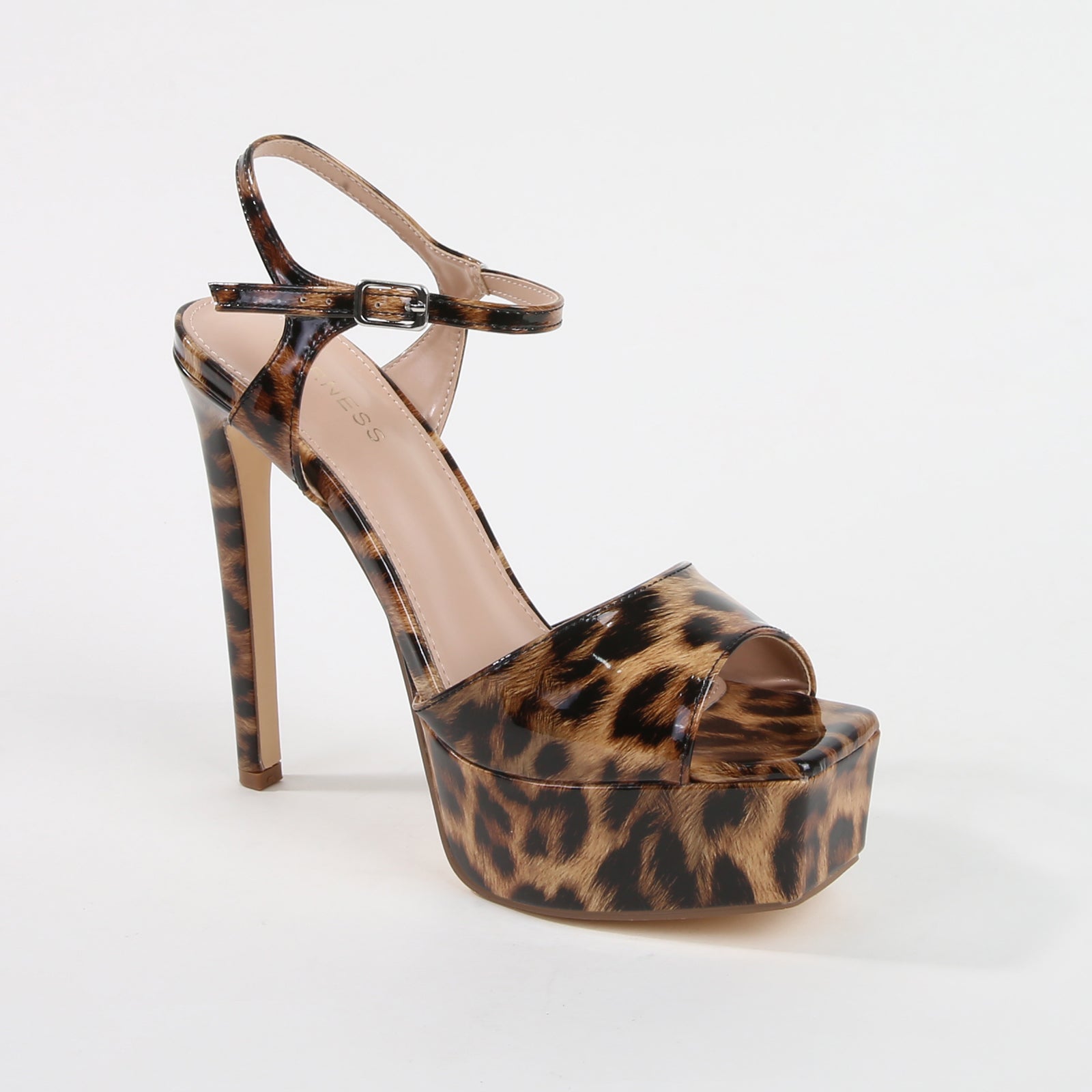 Genevieve Leopard Print Gloss Ankle Strap Platform Heels