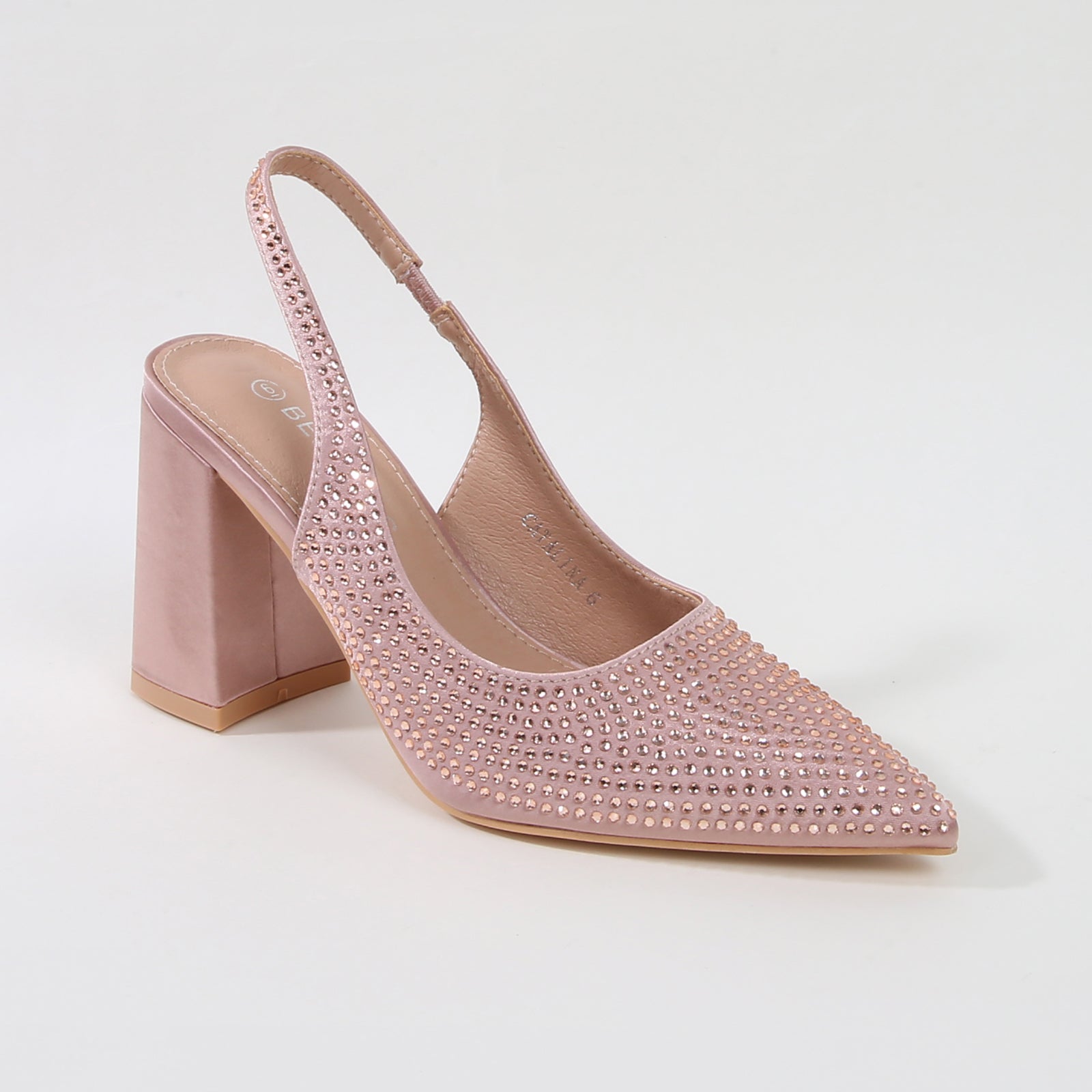 Add a touch of glamour to your look with these rhinestone-embellished slingback block heels. Crafted for those who love to shine, these heels feature a stunning array of shimmering rhinestones, creating an exquisite balance of sparkle and sophistication. The block heel offers comfort and stability, while the slingback design adds an effortless chic finish. Perfect for special occasions or nights out!