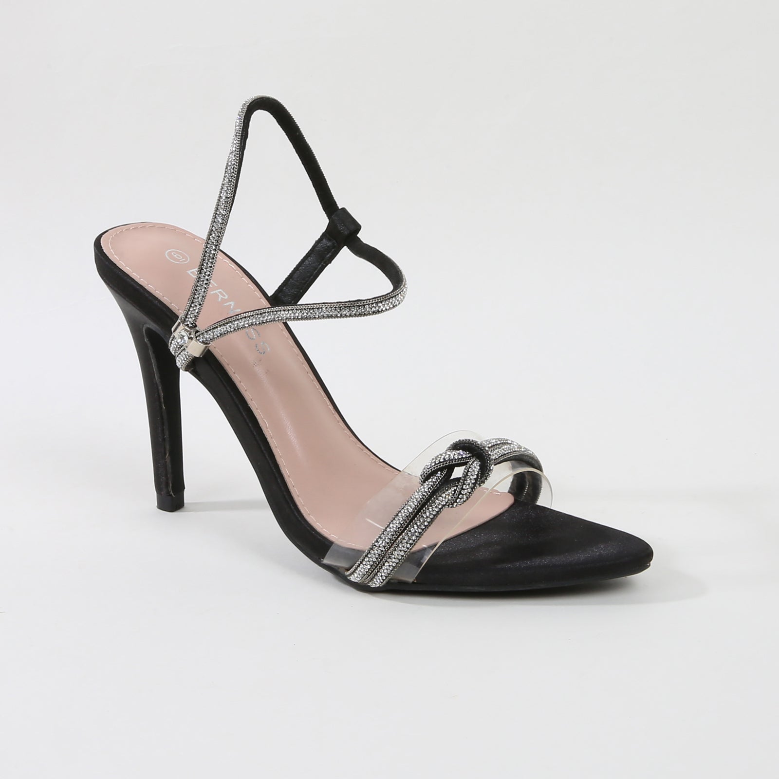 Add a touch of elegance and sparkle to your look with the Ruby stiletto heels, featuring a dazzling rhinestone-embellished knot detail. The transparent strap at the front adds a modern, chic twist. Ideal for evening events, parties, or special occasions, these heels combine timeless style with a glamorous edge, ensuring you stand out with every step.