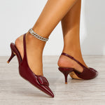 Jennifer Patent Slingback Kitten Heels with Geometric Embellishment