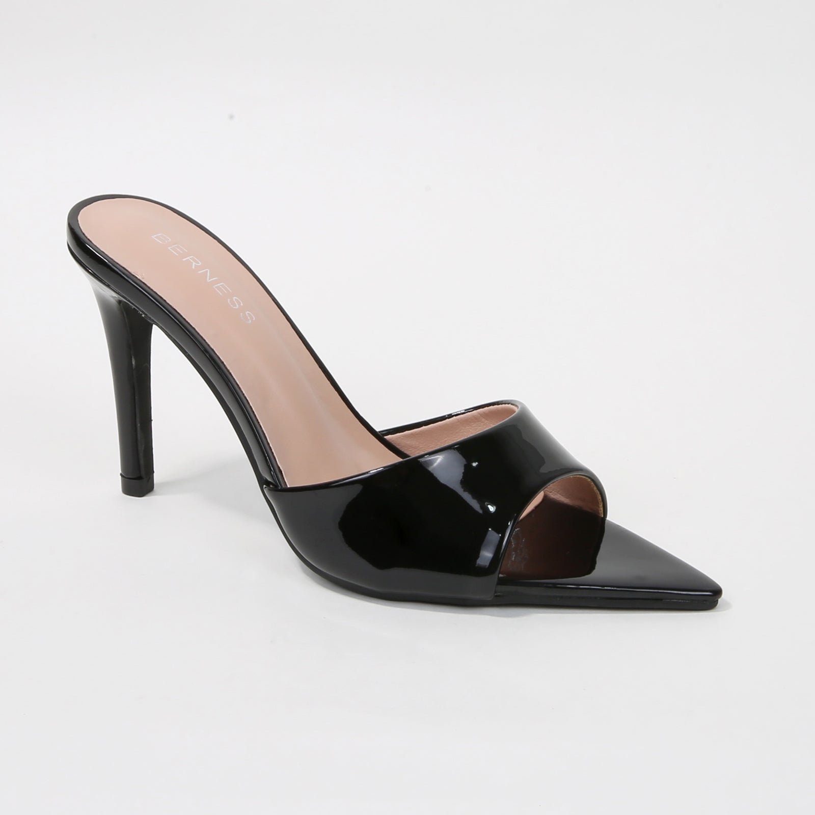 A bold yet refined heel designed with a sleek pointed toe and a wide glossy strap. Its clean, sculpted silhouette delivers instant sophistication—perfect for dressing up nights out, polished events, or elevating an everyday chic look.