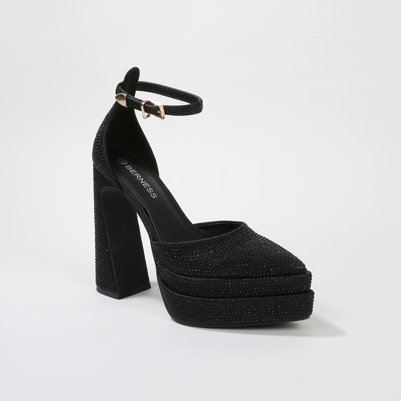 Step into elegance with the Blaze rhinestone-embellished platform block heels, perfect for adding a touch of sparkle to any ensemble. Featuring a bold platform and chunky block heel, these shoes deliver height and drama while ensuring stability and comfort. The all-over rhinestone detailing creates a glamorous look that’s ideal for special occasions, parties, or when you simply want to stand out.