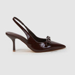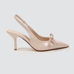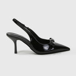 Danika Faux Leather Slingback Heels with Bow Detail