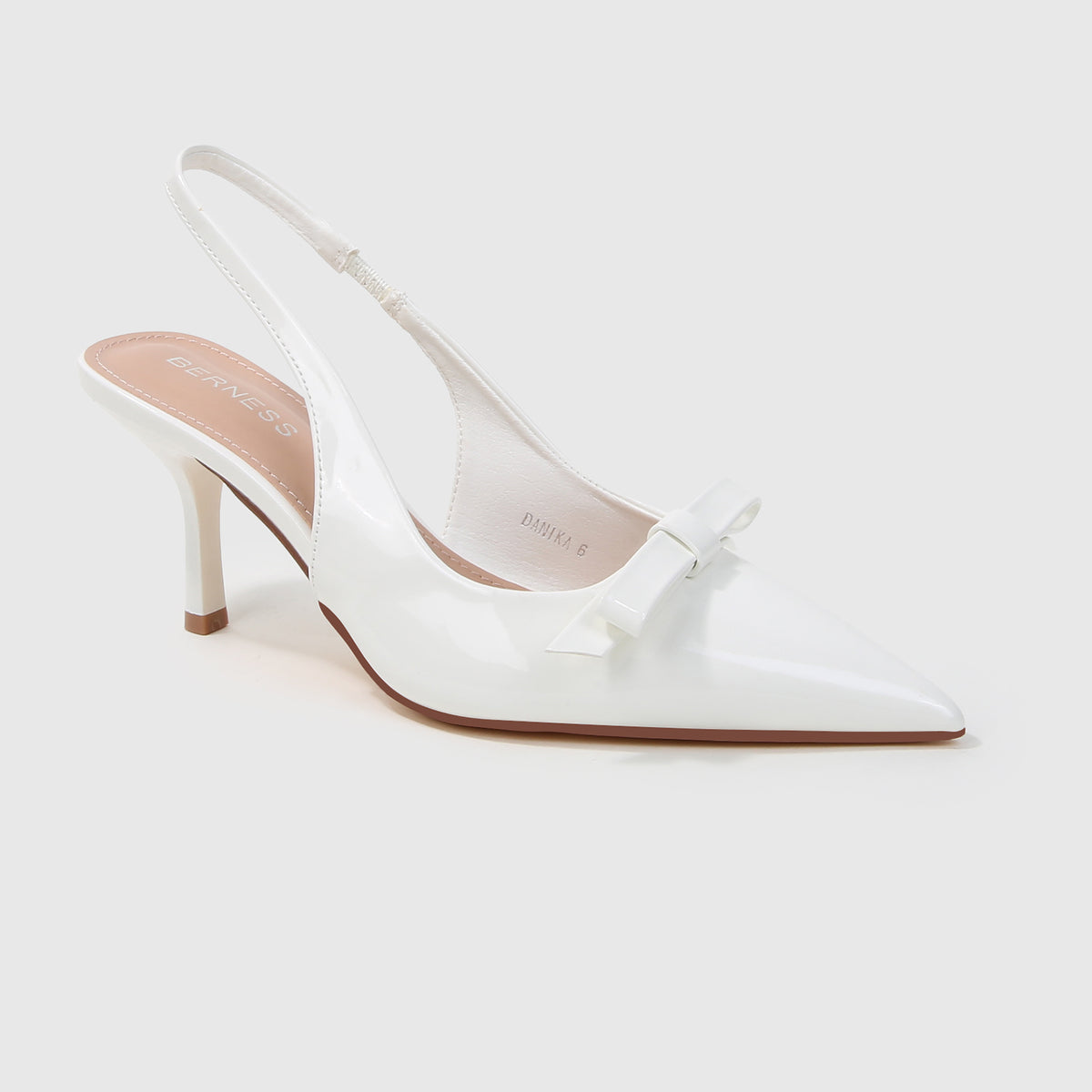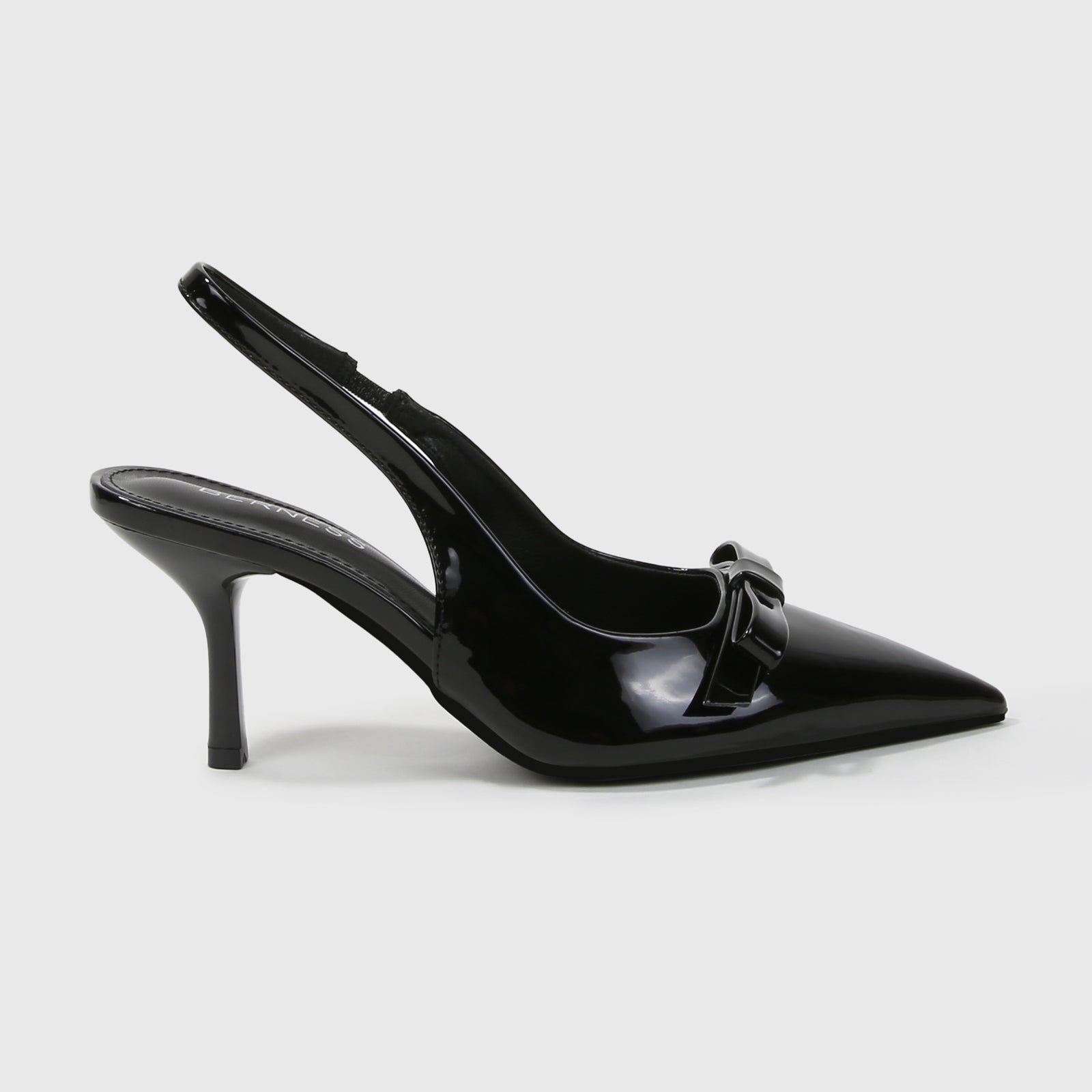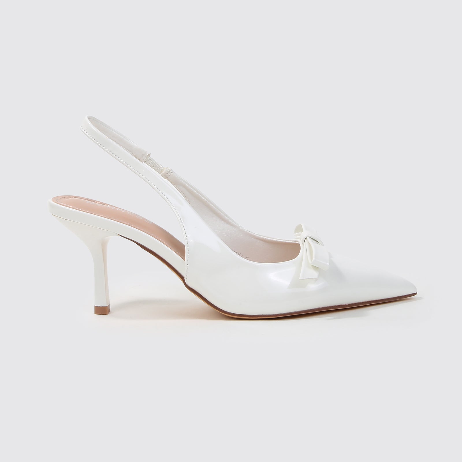 Crafted in smooth faux leather, these slingback stiletto heels feature a sleek pointed toe and a polished bow accent for a refined, feminine finish. The streamlined silhouette and elegant heel height make them a versatile choice for workdays, semi-formal occasions, and elevated evenings out.