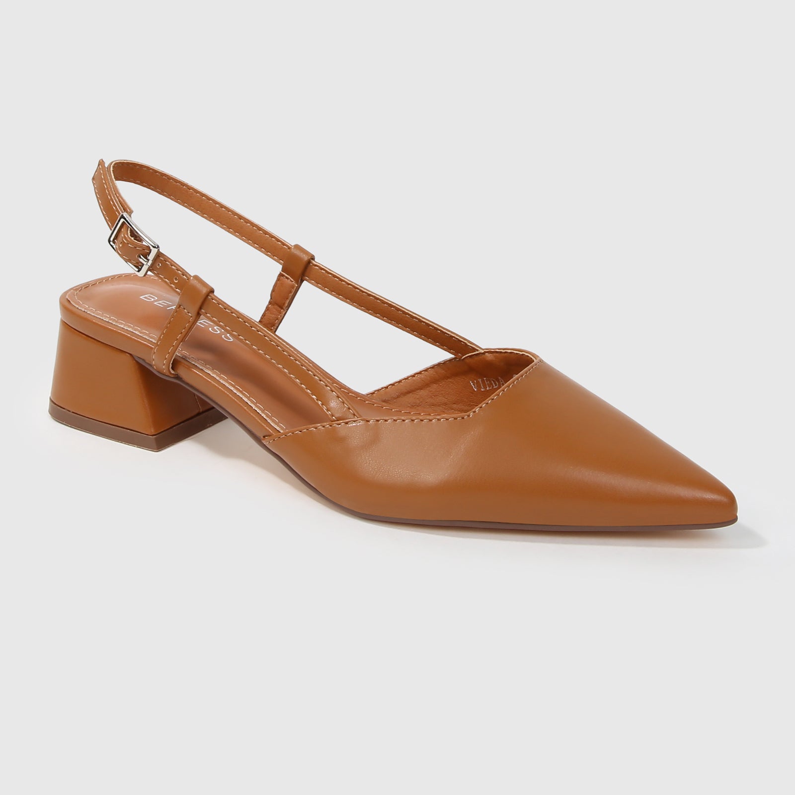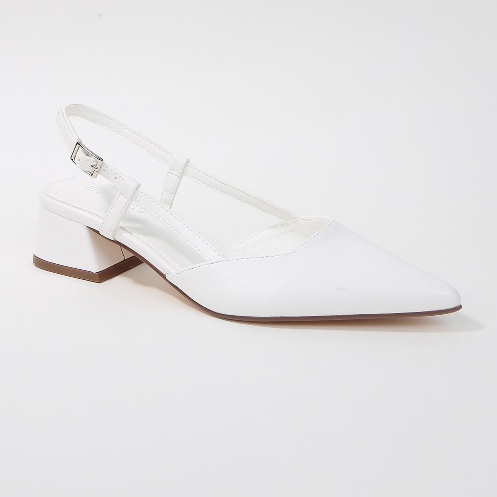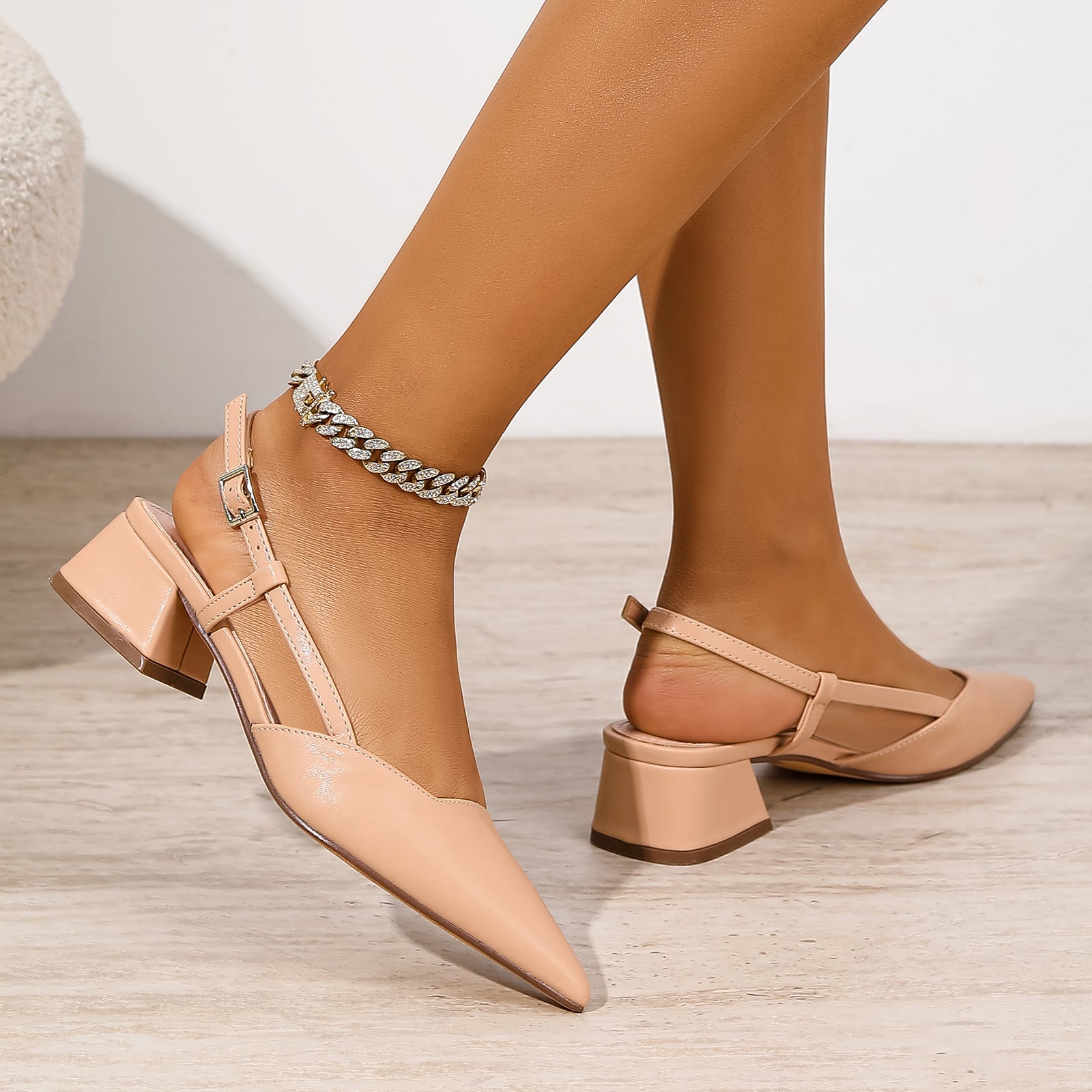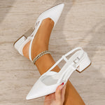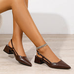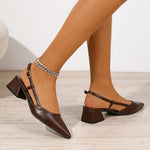 Designed with clean lines and everyday polish, these pointed-toe slingback pumps feature a structured block heel and adjustable buckle strap for a refined yet wearable look. Crafted in smooth faux leather, they are ideal for workdays, casual outings, or effortlessly polished occasions.