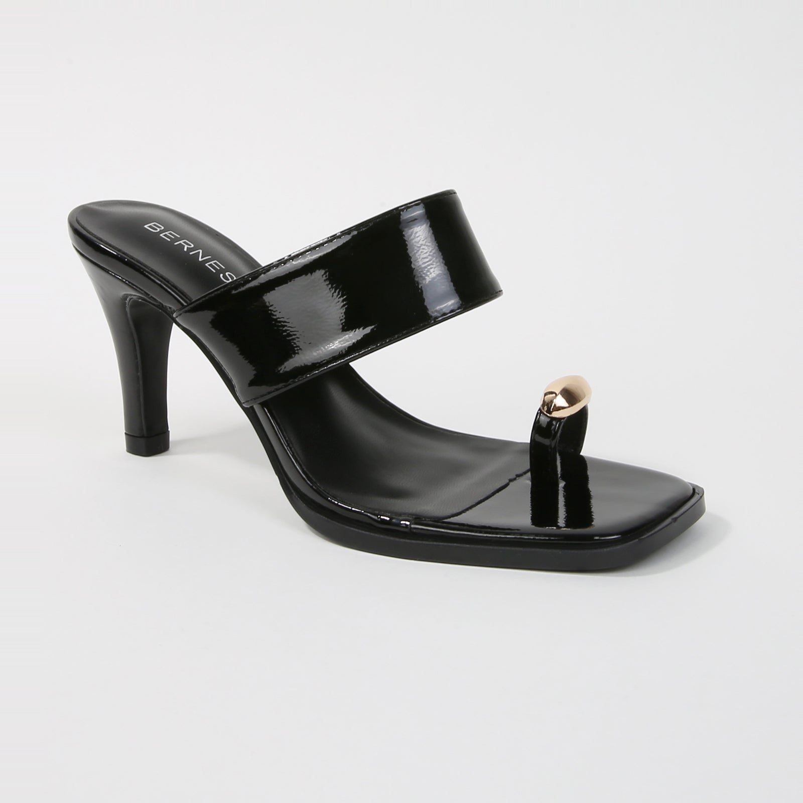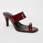 Catha Patent Wide Strap Slide Heels with Metallic Toe Ring