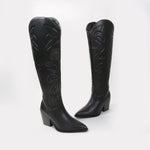 A sleek western-inspired boot that blends bold attitude with refined flair. Designed with embossed stitching and a sculpted block heel, it's perfect for elevating everyday outfits or adding statement style to nights out.