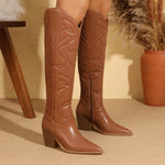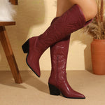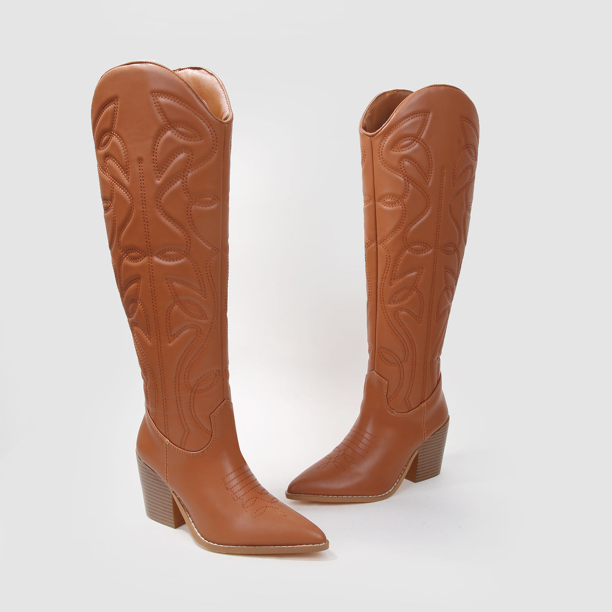 • Western-inspired knee-high silhouette with detailed embossed stitching